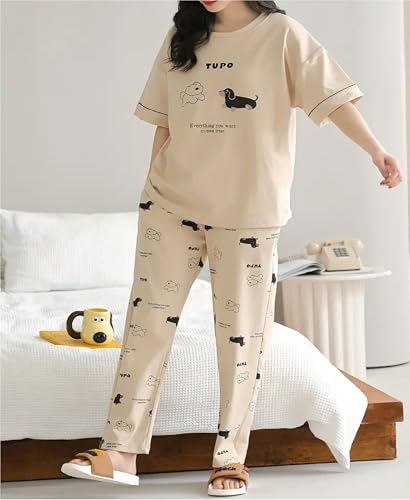 Louis Luxe Womens Korean Night Dress|| Full Pyjama Set || Korean Nightsuit ||Women Nightwear ||Round Neck Full Sleeve Nightsuit || Loungewear || Everyday Nightdress (ND-11-BEIGE-M)