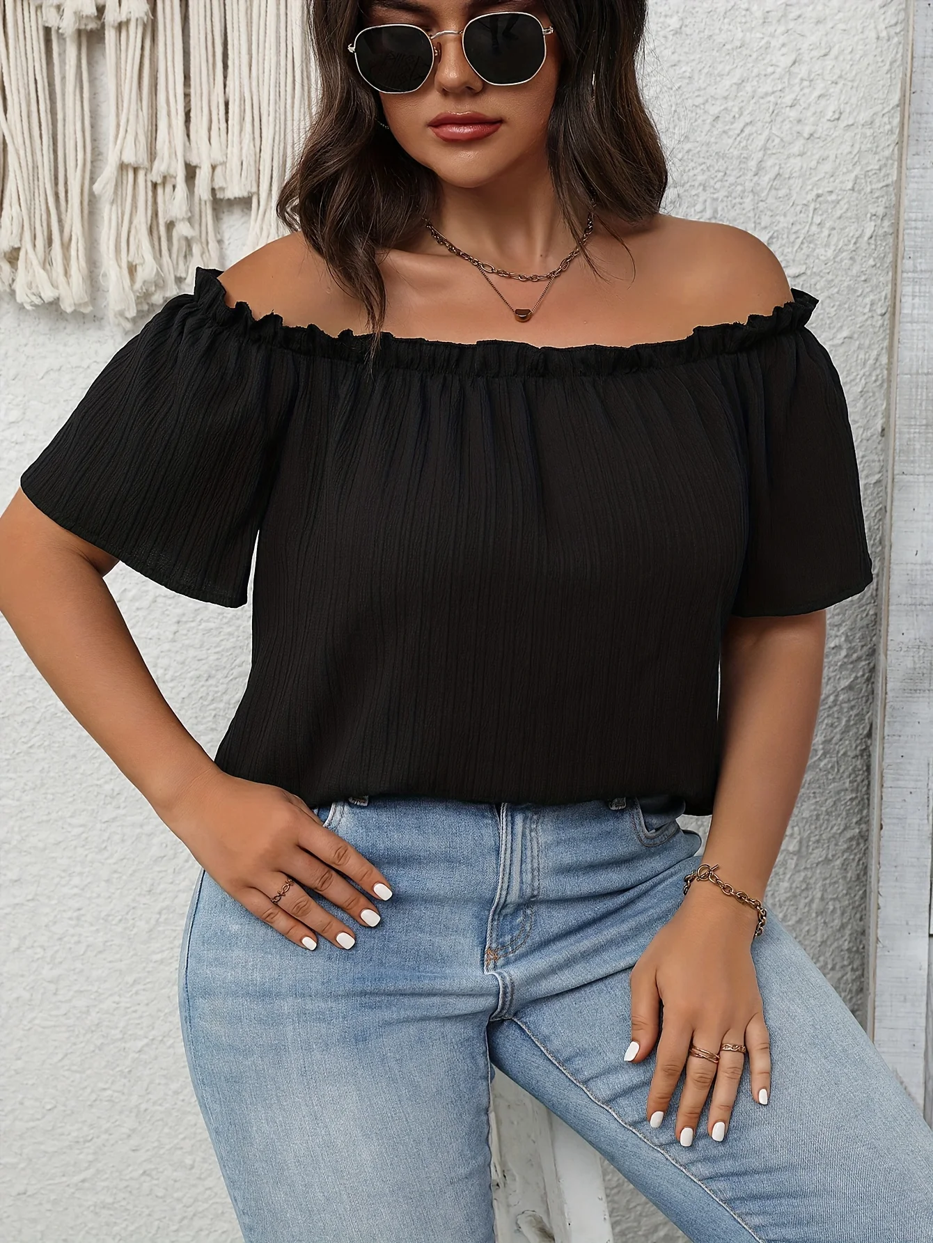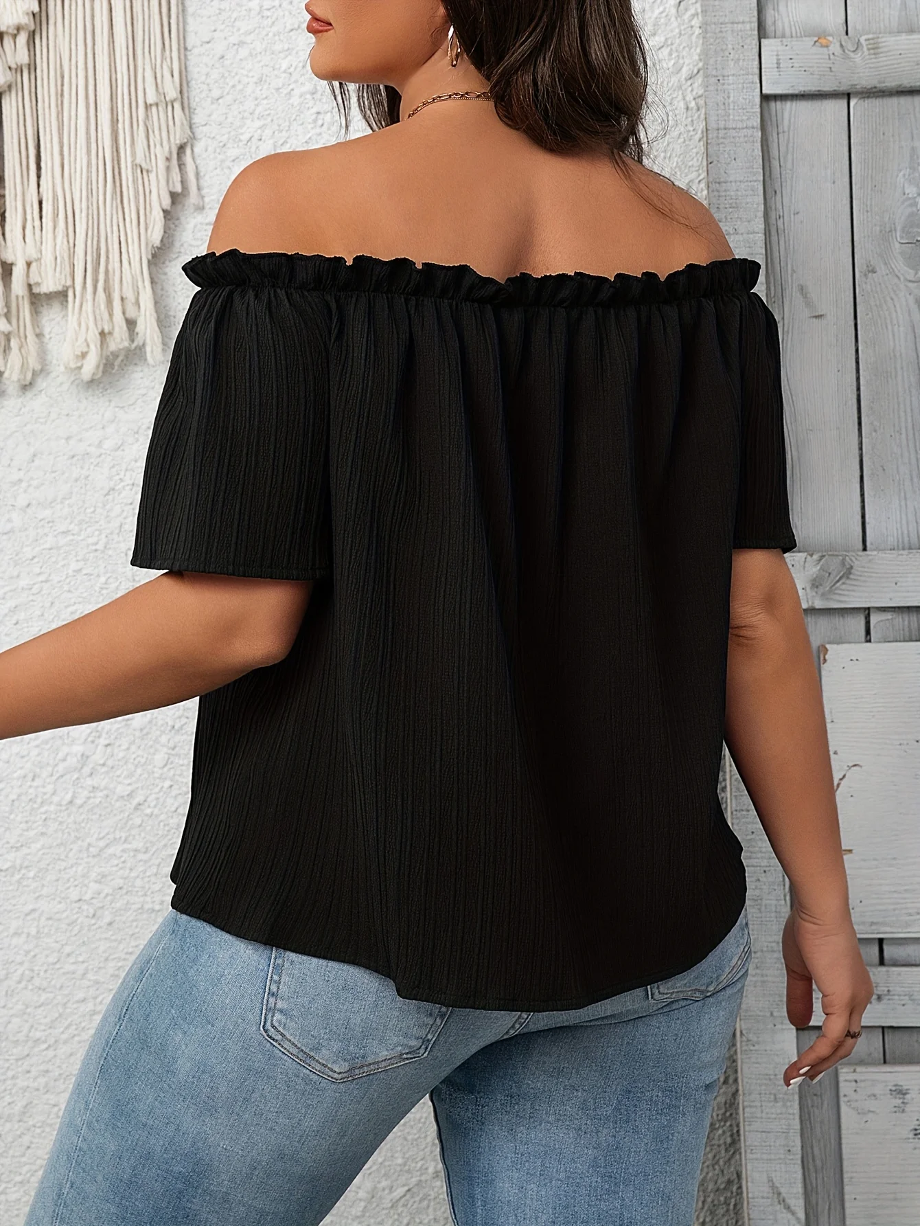 Be the first to review “Plus Size Summer Women Elegant Shoulderless Shirt Casual Fashion Solid Tops Office Lady Curve Clothing”