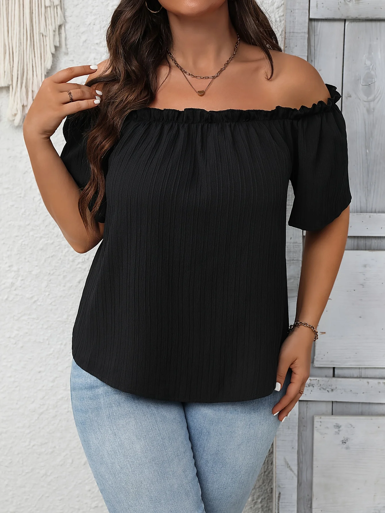 Plus Size Summer Women Elegant Shoulderless Shirt Casual Fashion Solid Tops Office Lady Curve Clothing